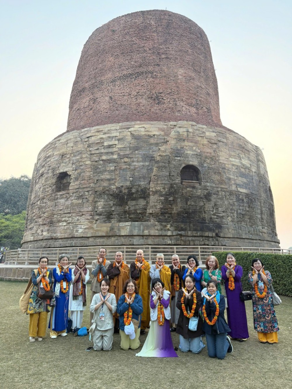 Trước đó, đoàn hành hương đến Sarnath, viếng bái Lộc Uyển (Vườn Nai) – nơi Đức Phật thuyết bài pháp đầu tiên Tứ Diệu Đế cho năm anh em Kiều Trần Như, đánh dấu sự hình thành của Tam Bảo: Phật – Pháp – Tăng. Tại đây, đoàn đã kinh hành và đảnh lễ quanh cổ tháp Dhamekh, nơi Đức Phật chuyển bánh xe Chánh pháp.