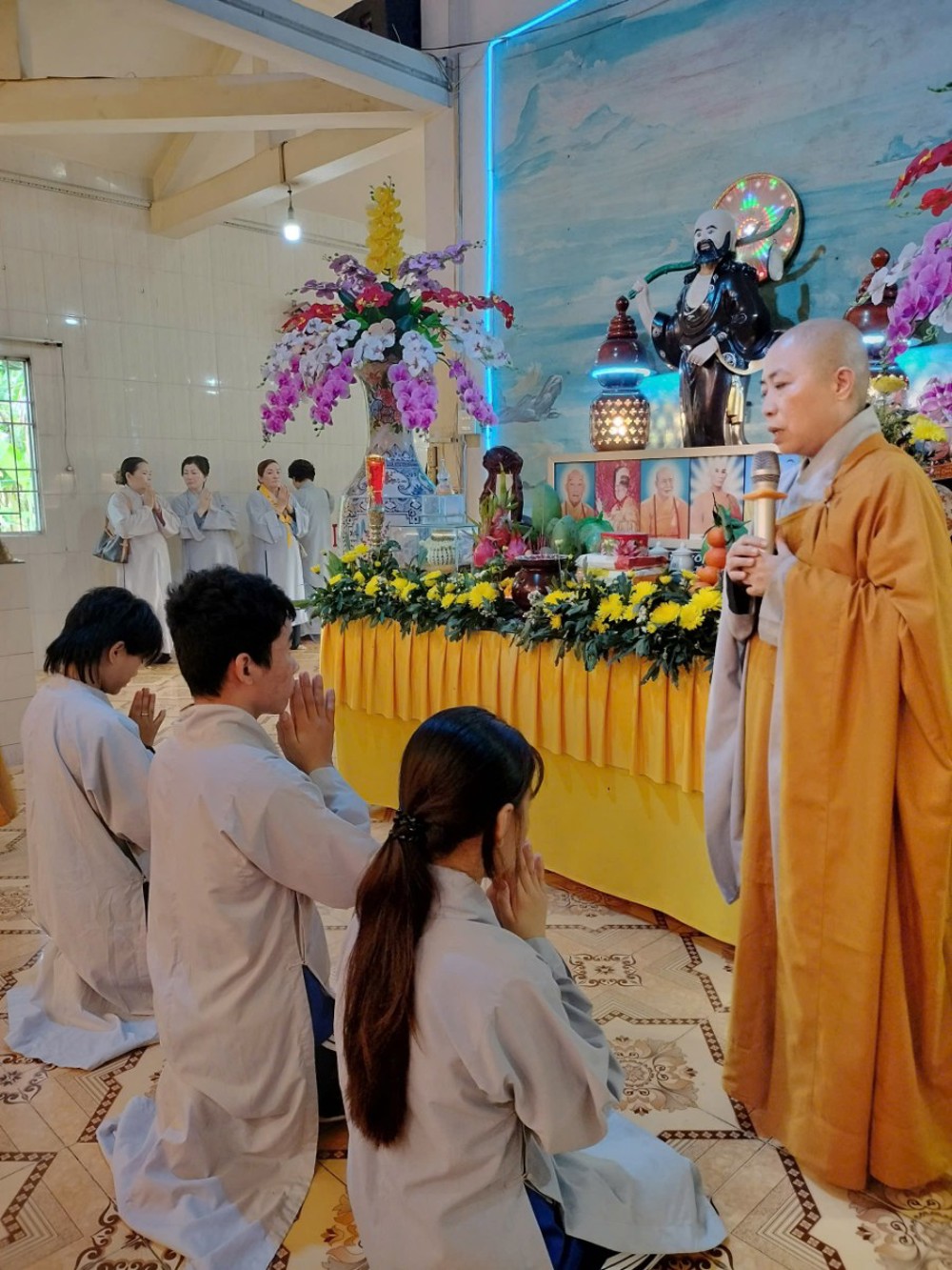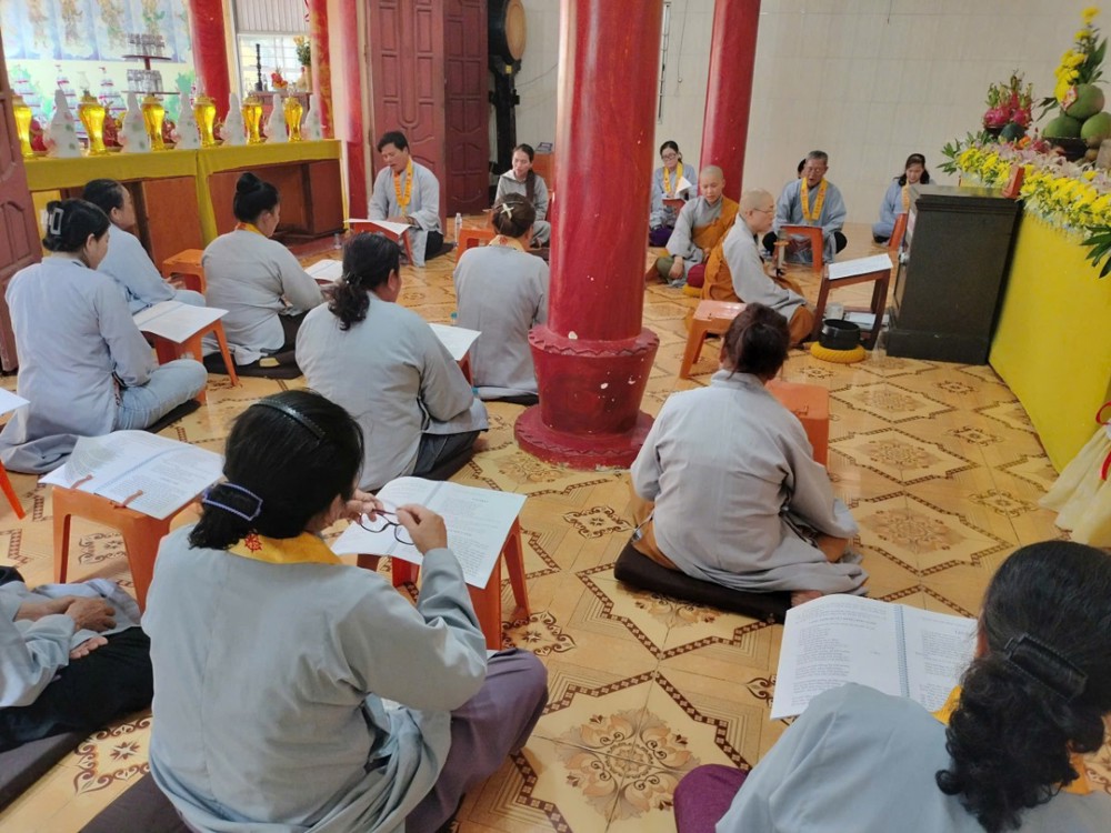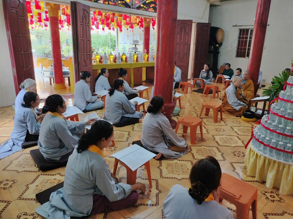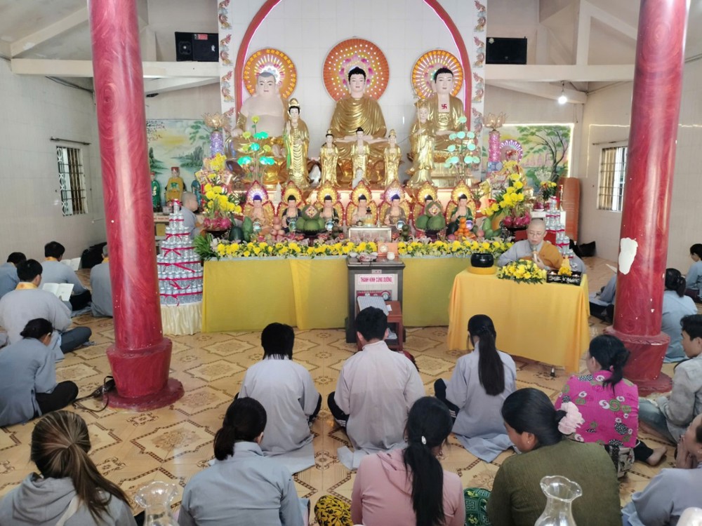 14 giờ chiều, đại chúng tiếp tục thời kinh Dược Sư trong sự tinh tấn. Dù sau đó trời đổ mưa nhẹ, nhưng ai nấy vẫn hoan hỷ ở lại chùa, cùng nhau chờ đợi thời khóa tiếp theo. Đúng 16 giờ, mưa dứt, không gian trở nên mát dịu. Phật tử về chùa ngày càng đông, tạo nên khung cảnh ấm áp giữa tiết xuân.