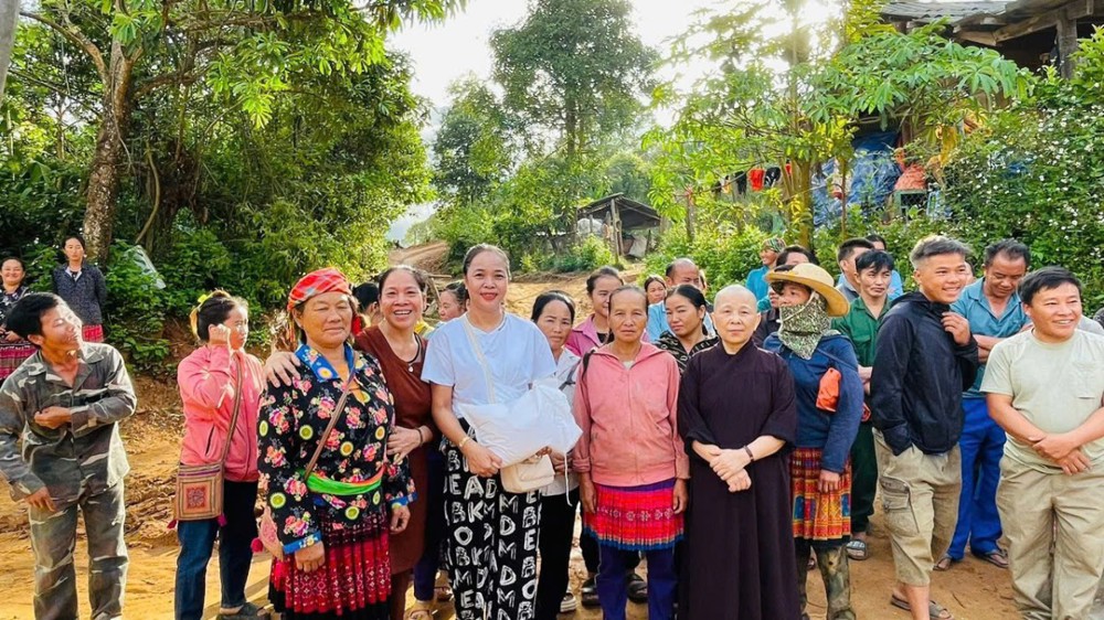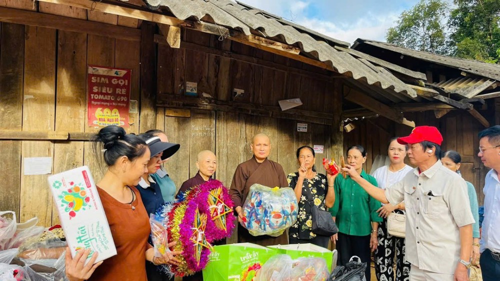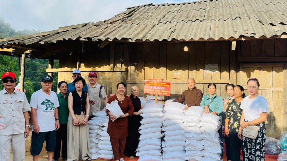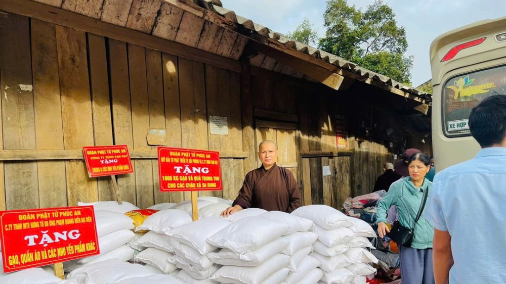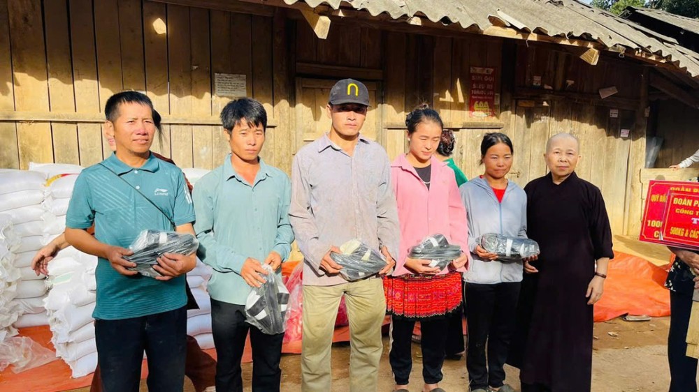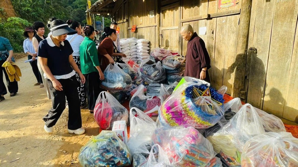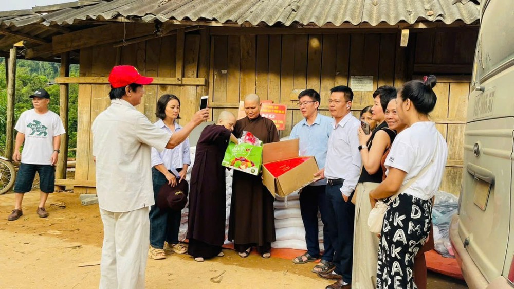 Chùa Ninh Bình cùng các đơn vị trao quà đến bà con vùng lũ tại xã Na Dung, tỉnh Điện Biên