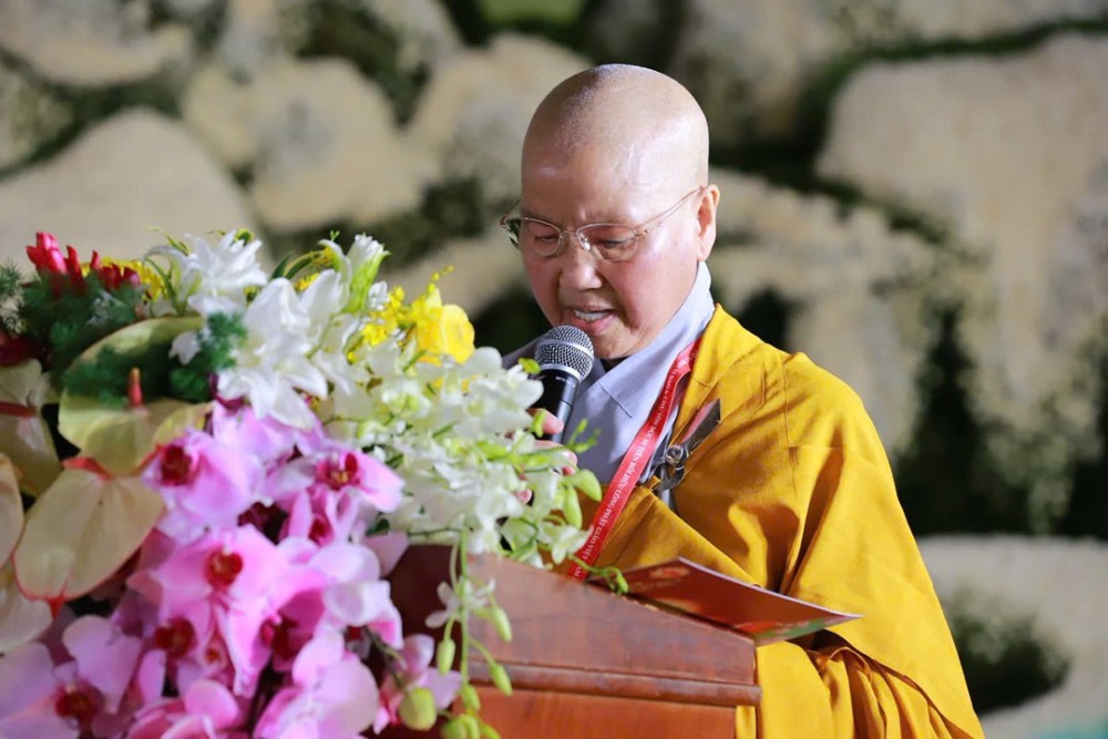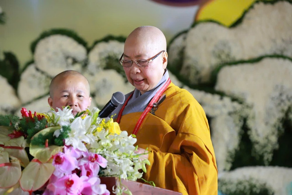 Ban huấn từ, Ni trưởng Thích Nữ Nhật Khương – Trưởng Phân ban Ni giới Trung ương, đã nhấn mạnh hành trình hơn một thập niên tổ chức Đại lễ trên phạm vi toàn quốc, đồng thời khẳng định giá trị cốt lõi làm nên sự phát triển của Ni giới chính là sự nỗ lực tu học và vượt lên chính mình của mỗi hành giả.