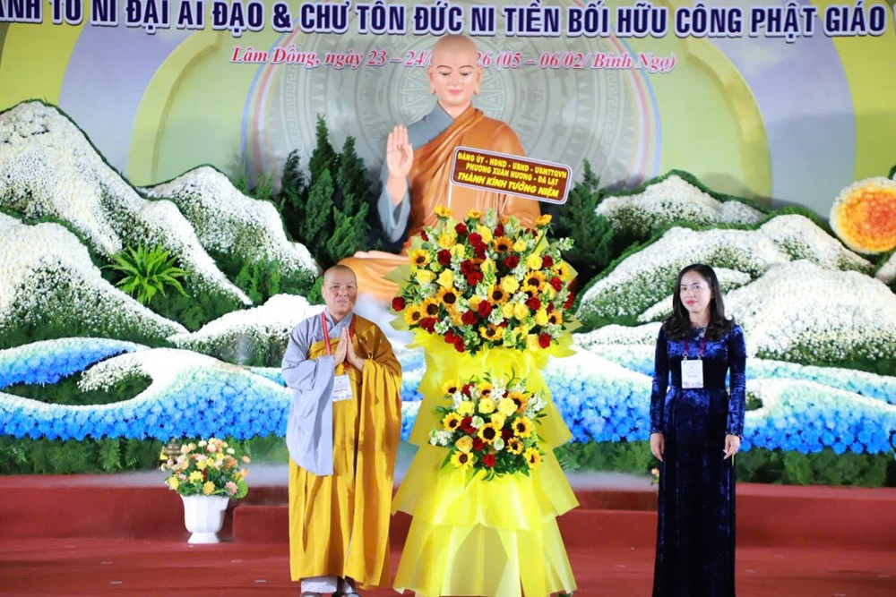 Phát biểu tại buổi lễ, bà Phạm Thị Phúc – Chủ tịch Ủy ban MTTQVN tỉnh Lâm Đồng – ghi nhận vai trò tích cực của Ni giới trong các phong trào xã hội, góp phần xây dựng đời sống văn hóa và khối đại đoàn kết tại địa phương.