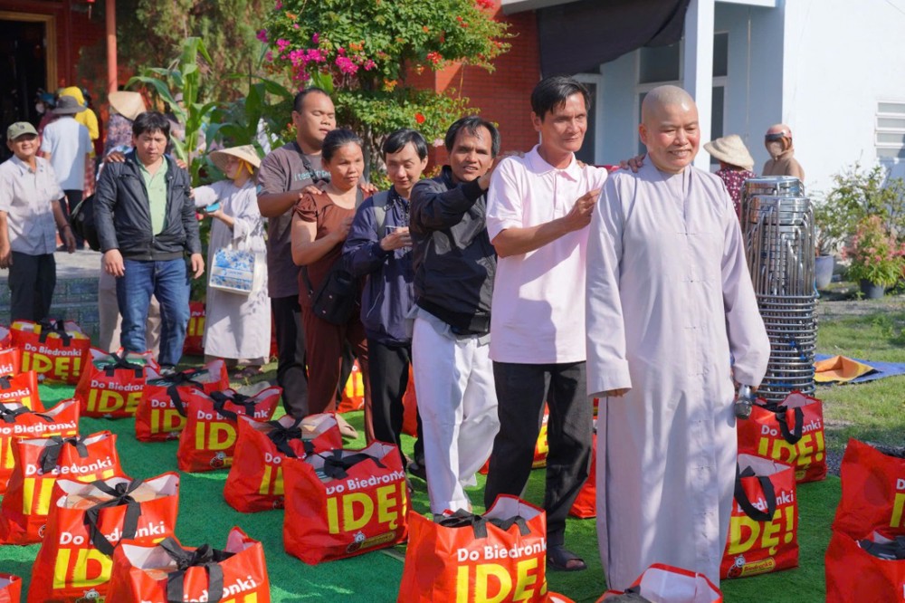 Tham dự buổi trao quà có Đại đức Thích Nguyên Đức – Ủy viên Ban Trị sự GHPGVN TP.HCM; đại diện Ban Mặt trận Tổ quốc, Hội Chữ thập đỏ, Hội Liên hiệp Phụ nữ phường Bến Cát, cùng quý mạnh thường quân đồng hành.